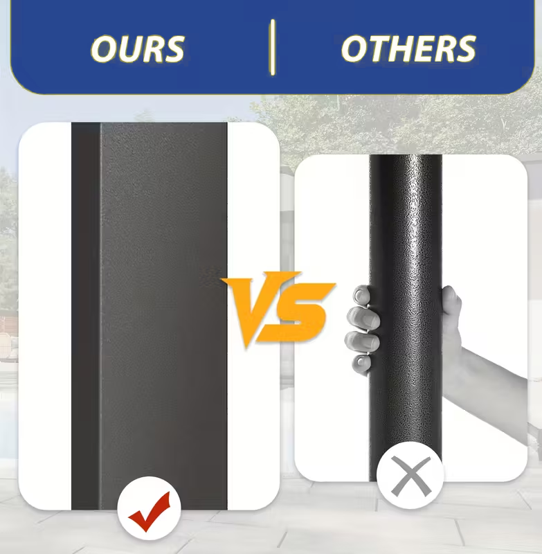 This gazebo features a heavy-duty steel frame with a powder coating for rust resistance and durability. Each leg has a diameter of Φ80mm, providing stable support for the structure. It is resistant to winds up to level 7 and supports up to 250 LBS. Expansion bolts and windproof ropes are included for improved stability on concrete floors.