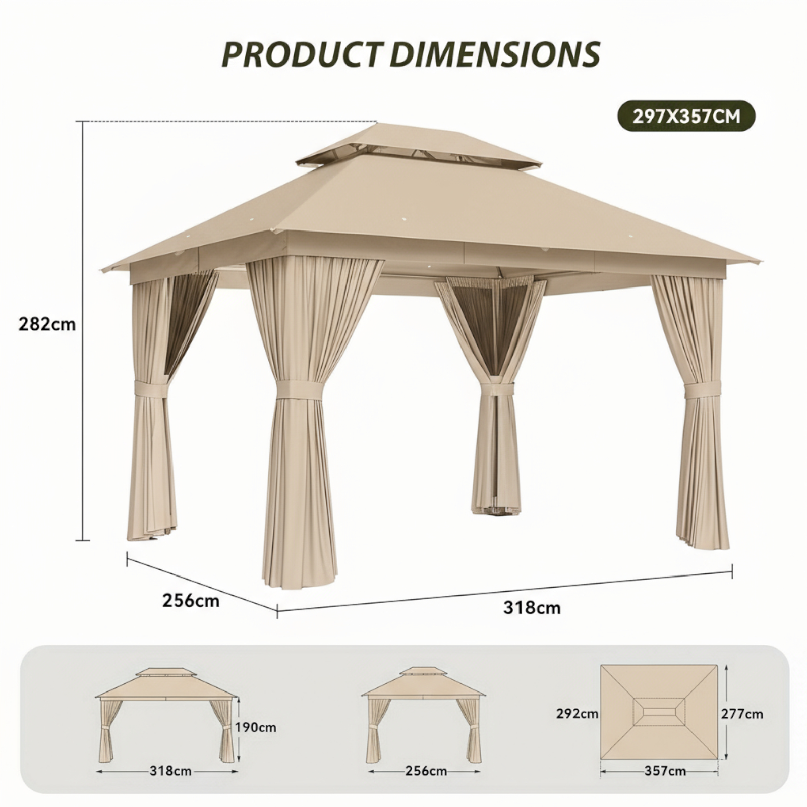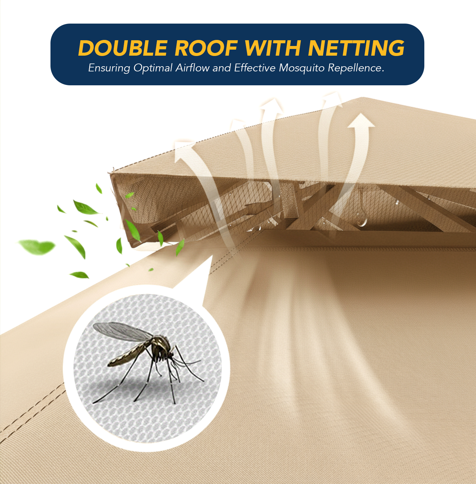 TerraLiving Double-Vented Roof Gazebo-Beige
