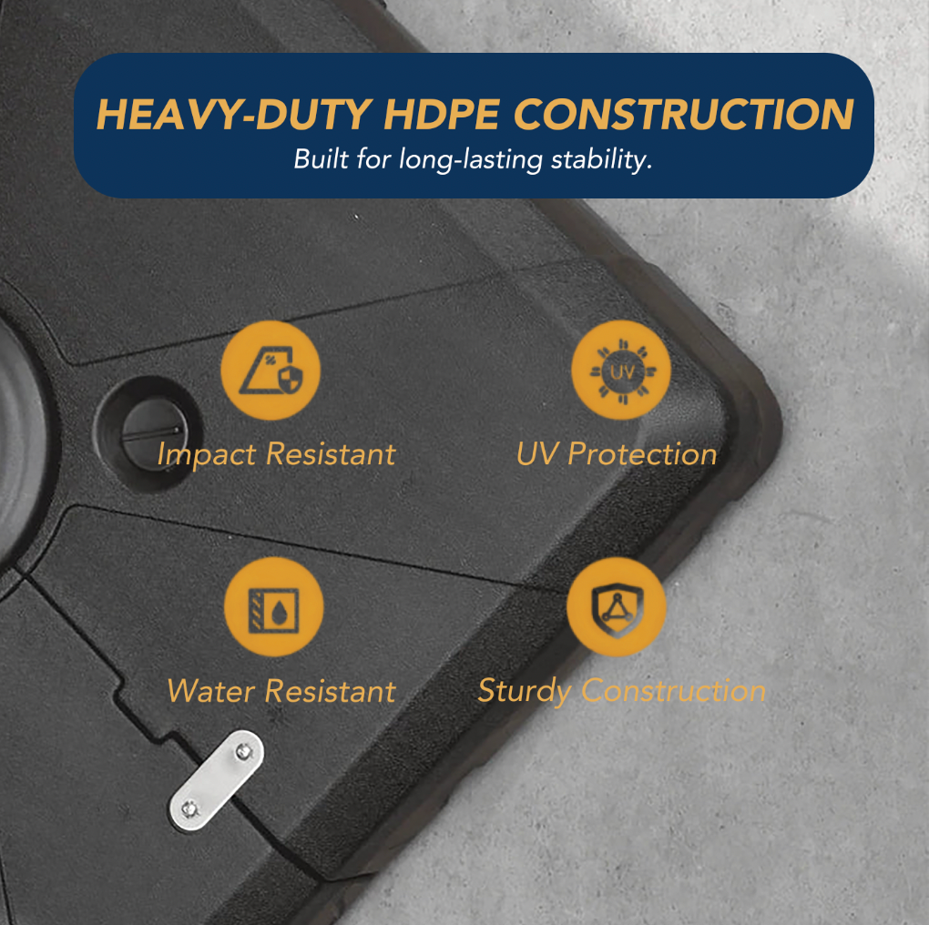 Note: Avoid using water only in cold or freezing climates, as frozen water can expand and damage the base. A sand-and-water mix helps prevent weight loss from possible leakage and minimizes issues from stagnant water in sealed tanks exposed to heat and sunlight.
